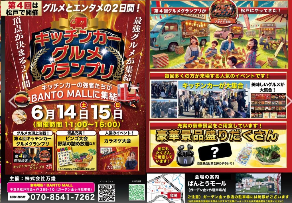 株式会社万燈(代表取締役:佐々木雄哉 本社:東京都新宿区)は、【第4回キッチンカーグルメグランプリ】を、万燈モール松戸で開催することを決定しました。